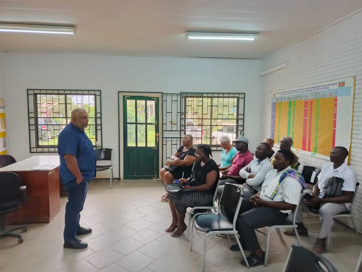 De sessie stond in het teken van “Enkele teelttechnieken voor zelfvoorzienendheid” en was bedoeld om leden praktische kennis mee te geven voor het opzetten en verbeteren van hun eigen moestuin. De voorlichting werd verzorgd door senior voorlichter B-Tech Oemar Khodabaks, bijgestaan door het team van LVV Wanica D, waaronder de rayonleider en ressortleider.