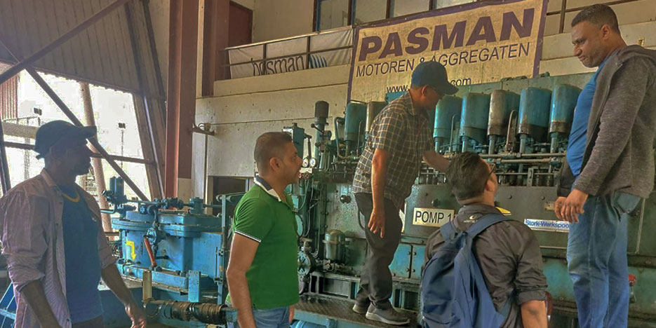 Het team dat het technisch beheer van het pompgemaal nu in handen heeft, staat onder leiding van, Armand Bipat, power generation manager bij de Energie Bedrijven Suriname (EBS), waar men reeds bekend is met de reparatie en het onderhoud van soortgelijke motoren als in het pompgemaal Wakay.