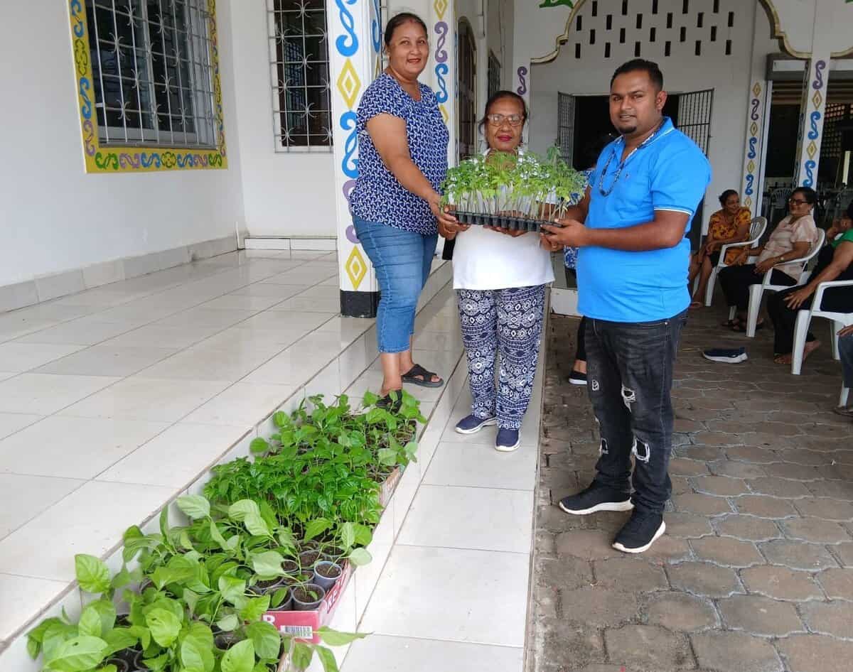 Senioren van de Shri Radha Krishna Mandir in Blauwgrond hebben op woensdag 14 januari 2026 groenteplantjes ontvangen van het ministerie van Landbouw, Veeteelt en Visserij (LVV), ressort Wanica D (Lelydorp). De uitreiking past binnen het beleid van LVV om zelfvoorzienendheid, voedselzekerheid en een gezonde leefstijl in de gemeenschap te bevorderen.