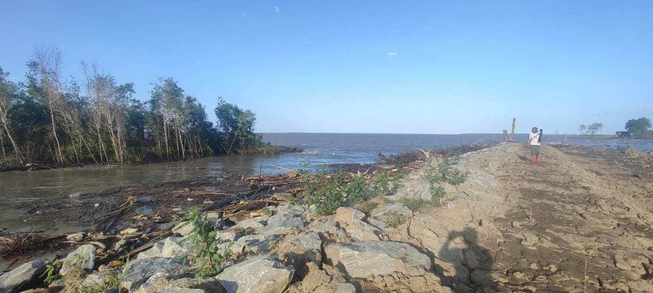 De dambreuk aan de Brantimakaweg te weg naar zee, wordt momenteel nog hersteld door het ministerie van Openbare Werken en Ruimtelijke Ordening.