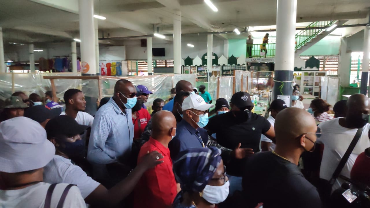 Echter, niet iedereen was blij met de komst van de NDP- voorzitter. “Meki a man gwe!”, roept een marktventer. Dat hij niet blij is, is duidelijk te merken aan zijn Lichaamshouding. “Om de NDP zitten we nu in die pina. Zoveel geld gestolen en zaken onderling geregeld”, zegt de marktventer. De aanhangers van Bouterse waren het niet eens met personen die een andere mening hadden en antwoordden hen meteen. “Oma je weet niet waarover je praat. Na baas e go tyari a verlossing gi unu”, wordt er geroepen door een aanhager van Bouterse.