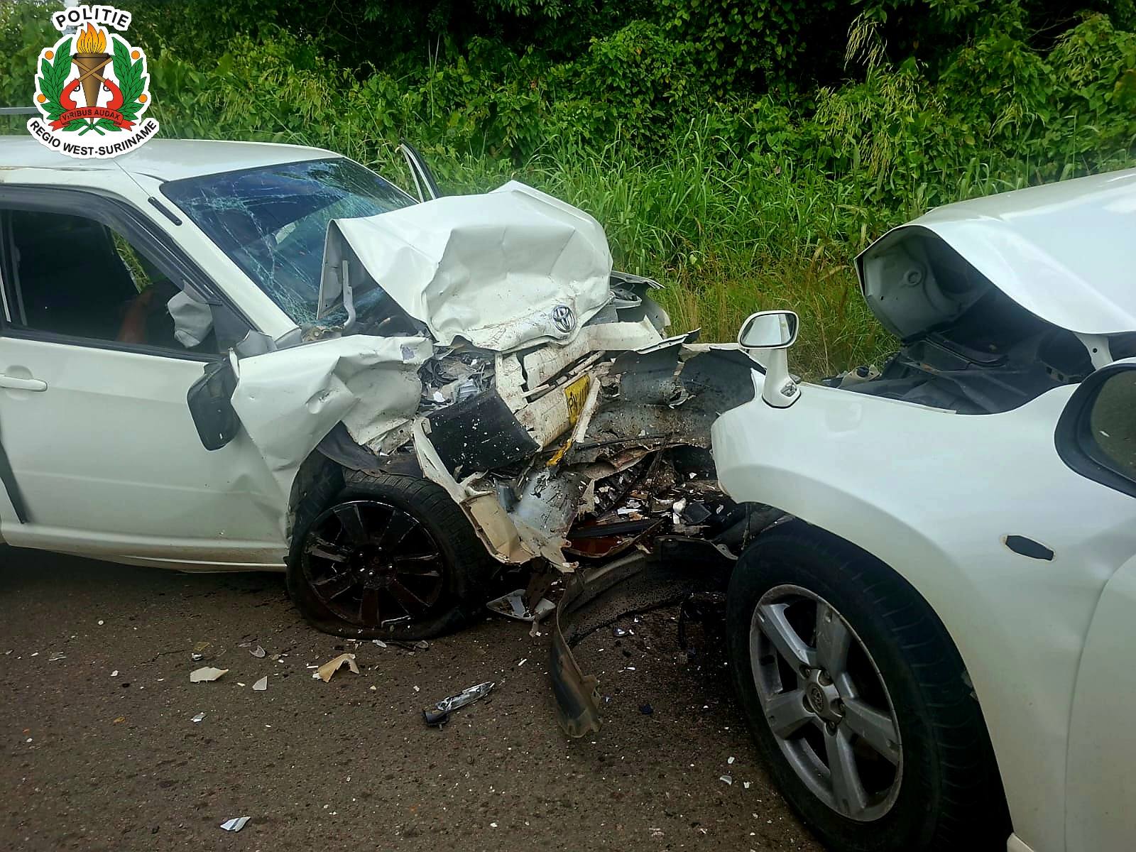 De politie van het bureau Jarikaba kreeg de melding en trof bij aankomst twee zwaar beschadigde voertuigen en meerdere gewonden aan. De Toyota RAV werd bestuurd door de Nederlander C.M. (68), die twee inzittenden bij zich had. De Toyota Probox stond onder bestuur van M.T. (30), met één medepassagier.
