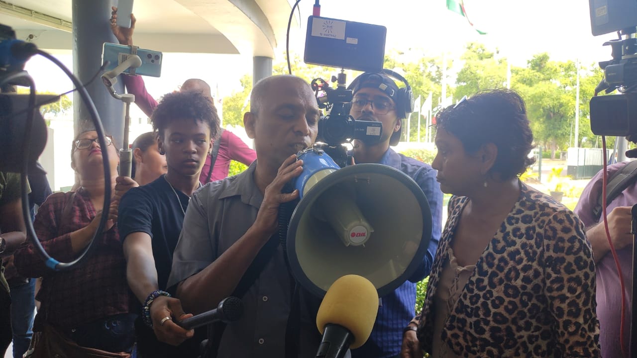 Toen dit niet lukte – omdat de president op dat moment De Nationale Assemblee toesprak – is de groep naar het parlement getrokken, waar de mensen zijn toegesproken door DNA-ondervoorzitter Dew Sharman en minister Stanley Raghoebarsing van Financiën en Planning. Enkele personen met een beperking waren zeer verontwaardigd en gaven aan dat president Chan Santokhi onder hun ogen is weggereden. “Hij is asociaal. Dit is niet alleen een klap in het gezicht van mensen met een beperking, maar ook een klap in het gezicht van de totale samenleving. Hij heeft zijn ware karakter getoond”, luidden de boze reacties.