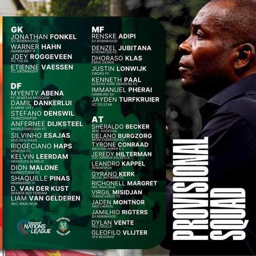 *Aanvallers*: Jamilhio Rigters (Robinhood/Suriname), Gleofilo Vlijter (OFK Beograd/Servië), Sheraldo Becker (Real Sociedad/Spanje), Jeredy Hilterman (Arminia Bielefeld/Duitsland), Leandro Kappel (Pendikspor/Turkije), Jaden Montnor (Aris Limassol/Cyprus), Virgil Misidjan (Ferencvárosi/Hongarije), Tyrone Conraad (Meizhou Hakka/China), Gyrano Kerk (Royal Antwerp/België), Dylan Vente (PEC Zwolle/Nederland), Richonell Margaret (RKC Waalwijk/Nederland) en Delano Burgzorg (Middlesbrough/Engeland).