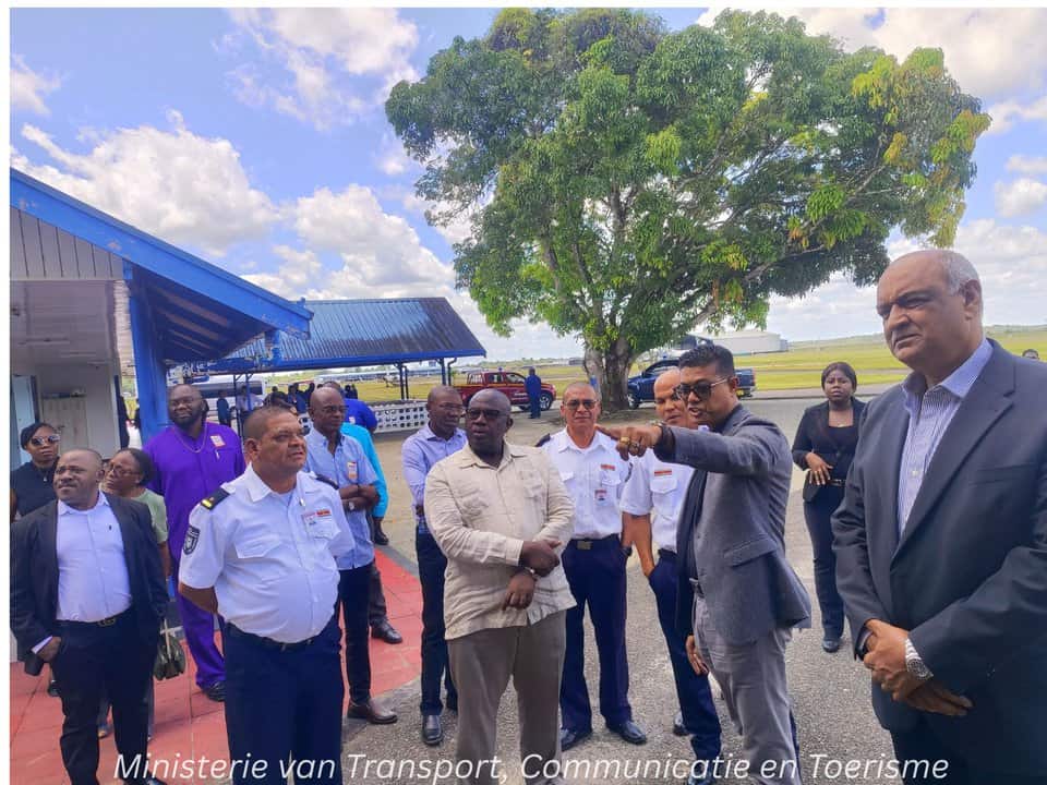Minister Raymond Landveld heeft vrijdag bij een bezoek aan het Luchthavenbeheer op de Johan Adolf Pengel Luchthaven poolshoogte genomen van de situatie.