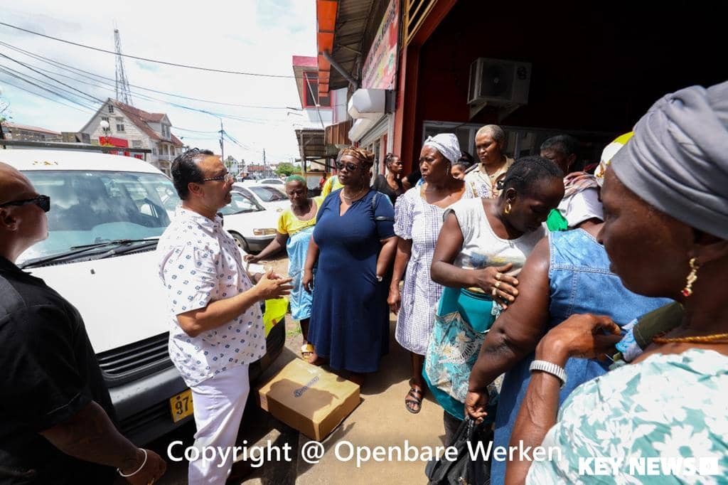 Minister Riad Nurmohamed van het ministerie van Openbare Werken (OW) heeft op dinsdag 24 mei 2023 persoonlijk een grote groep marktverkopers van de Vreedzaam markt toegesproken.