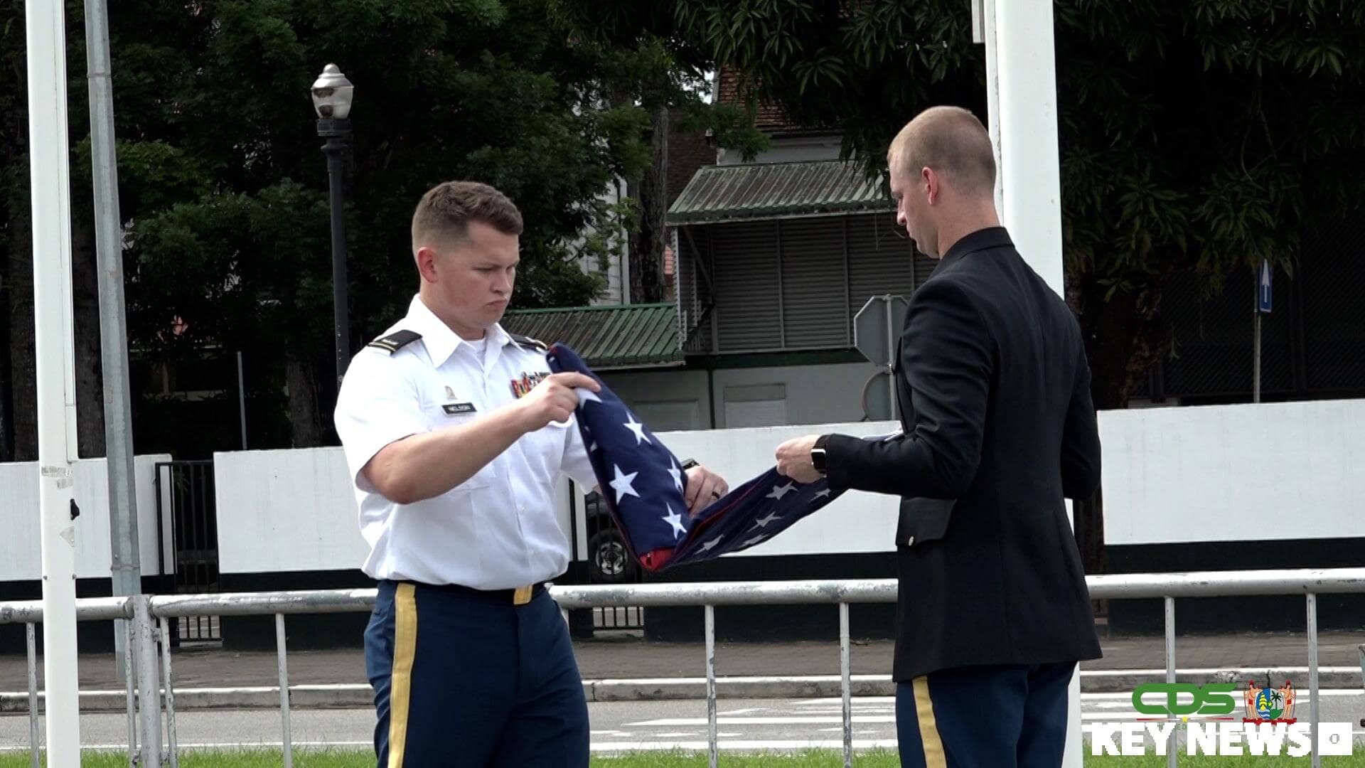 Minister Ramdin heeft samen met de director of the joint staff of South Dakota National Guard, Deborah Bartunek, een bloemenkrans gelegd bij de vlaggenstok op het Onafhankelijkheidsplein, waar de Amerikaanse vlag halfstok was gehangen ter ere van de gevallenen. Het Nationaal Leger ondersteunde het geheel door het afspelen van het volkslied en marsmuziek. Er werden ook saluutschoten afgevuurd.