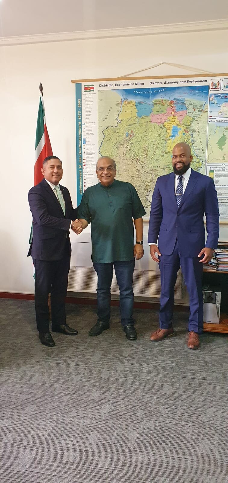 Minister Parmanand Sewdien van Landbouw, Veeteelt en Visserij (LVV) heeft de vicepremier van Aruba, Ursell Arends, van het kabinet-Wever-Croes II, en diens secretaris Carlos Quiamo op zijn kantoor ontvangen. Sedert 2021 is de vicepremier ook minister van Integriteit, Transport, Natuur en Ouderenzorg.