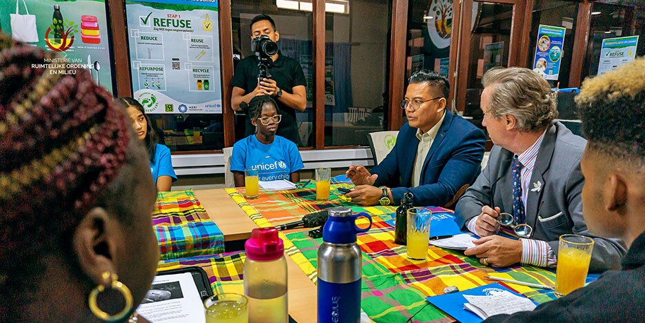 Bij het bezoek waren aanwezig Lakisha Aseja, Anahita Binda, Fasieha Castillion, Isabella Finkie en Matai Zamuël. Isabella Finkie zegt dat de rollen van het ministerie, jongeren en UNICEF belangrijk zijn in het klimaatvraagstuk, omdat plastic steeds een groter probleem vormt voor de samenleving. “Als deze drie partijen samen gaan werken doordat bijvoorbeeld ROM met een beleid komt om plastic verbruik te verbieden, kan Unicef voor andere alternatieven zorgen en de jongeren kunnen met manieren komen om de gevaren van plastic te delen via de verschillende (media)kanalen. Dan kunnen we er zeker van zijn dat het indammen een succes wordt.”