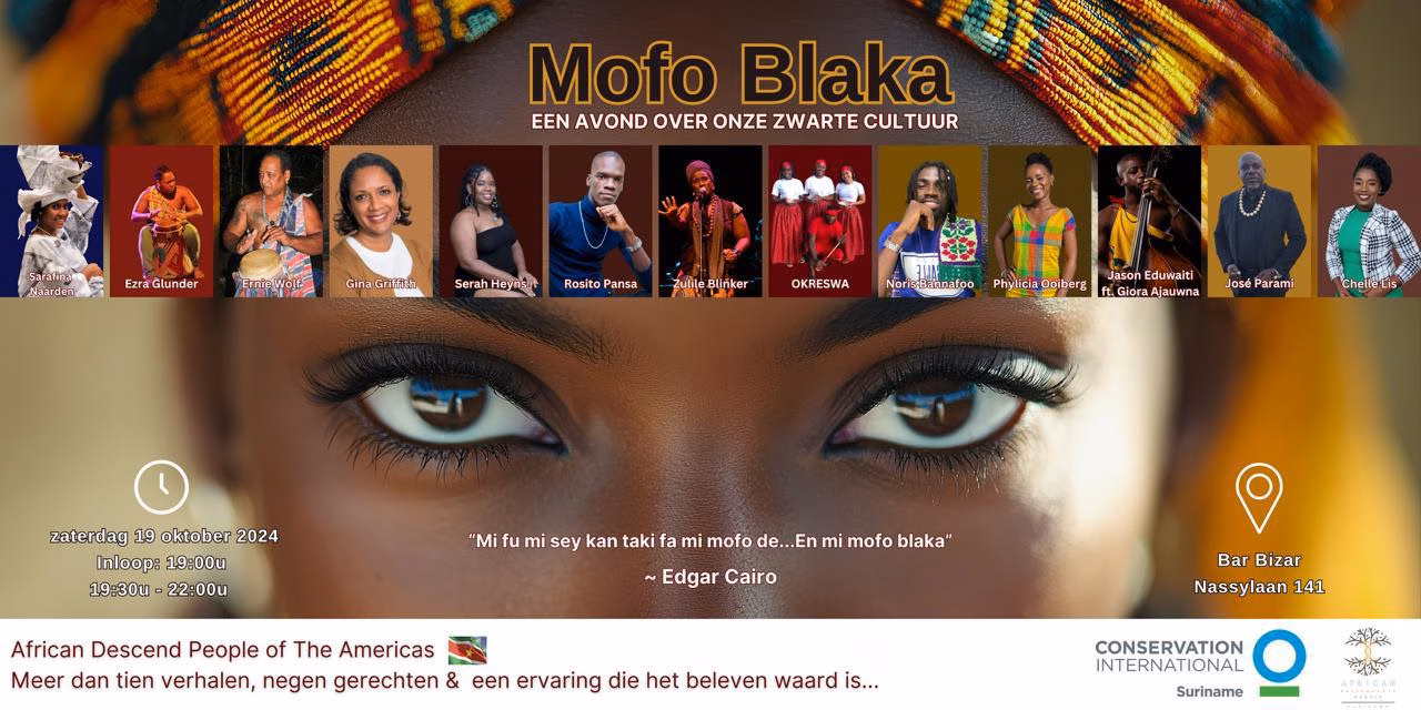 “Mi, fu mi sei, kan taki fa mi mofo de en mi mofo blaka”, woorden van literair icoon Edgar Cairo, waarop de storytelling avond, Mofo Blaka, is gestoeld.
