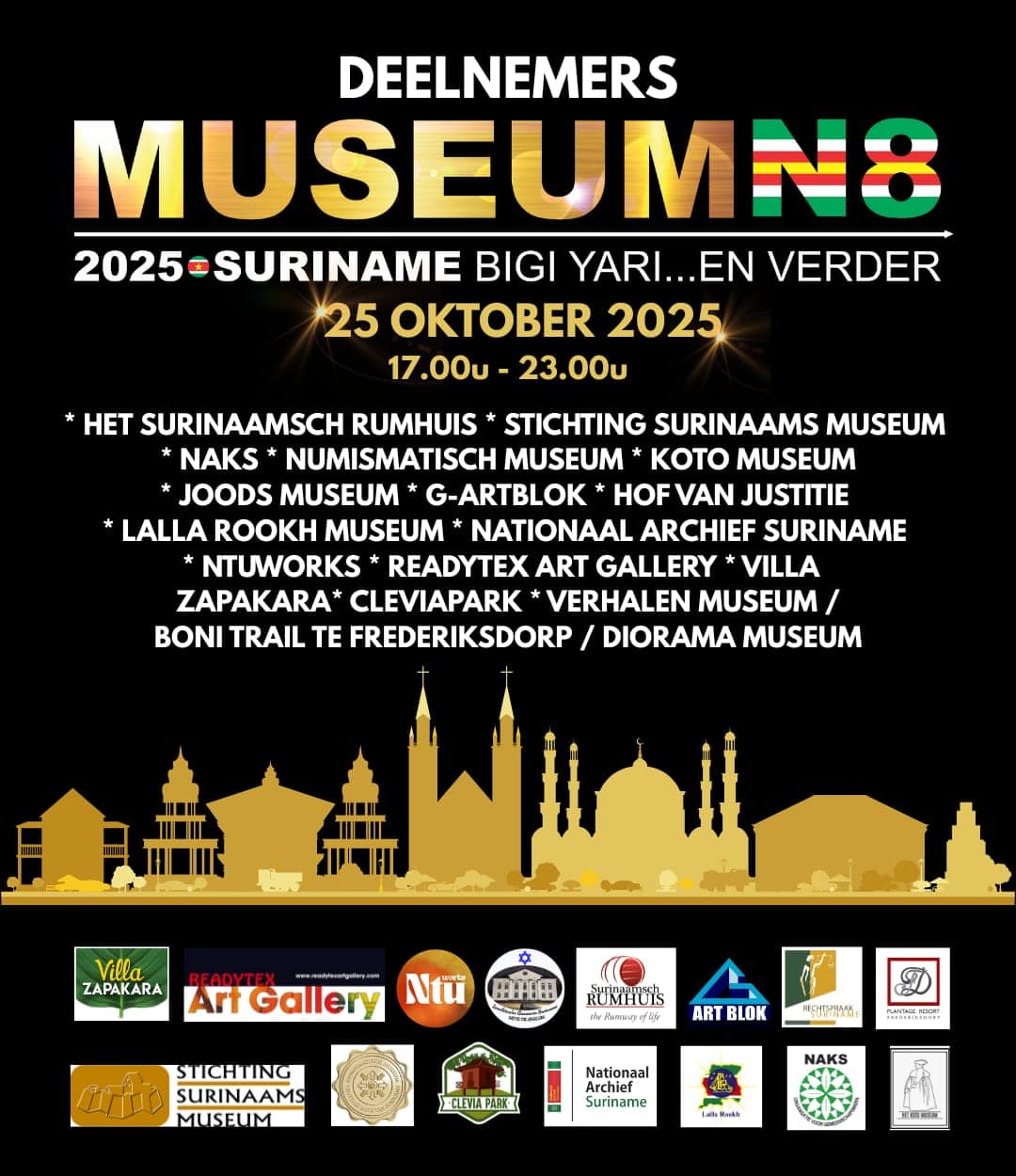 Tijdens de jaarlijkse Museumnacht (MuseumN8) openen musea en kunstinstellingen in Paramaribo de deuren in de avonduren voor het publiek. Dit jaar is het centrale thema “Suriname Bigi Yari … en verder”, waarmee bezoekers worden uitgenodigd om stil te staan bij het verleden en vooruit te kijken naar de toekomst.