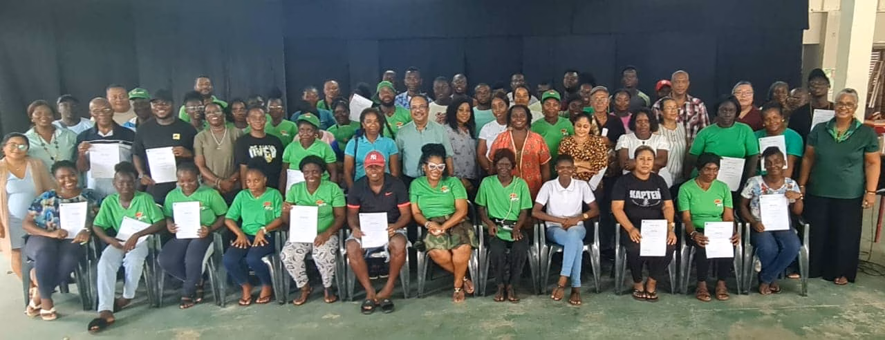 Aan het eind van de cursus kregen alle participanten uit handen van de voorzitter van de NPS, Dr. Gregory Rusland, een verklaring van deelname uitgereikt en heette hun van harte welkom in de Nationale Partij Suriname. Hierna sprak hij ze toe en benadrukte dat de Nationale Partij Suriname een politieke organisatie is, gestoeld op de principes van “diversiteit en inclusie” van alle burgers binnen onze samenleving.
