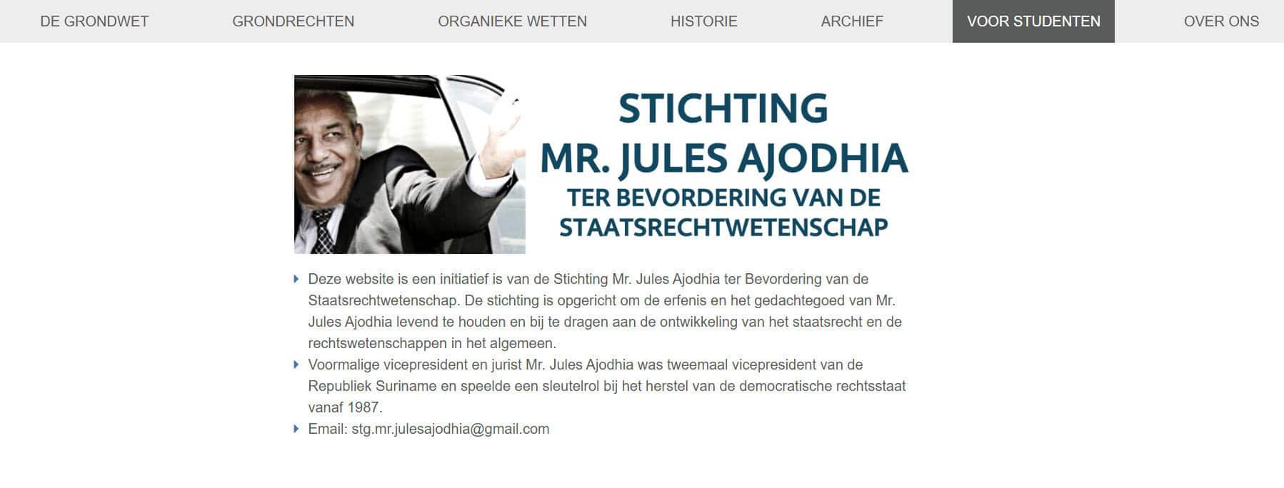 De Stichting Mr. Jules Ajodhia ter Bevordering van de Staatsrechtwetenschap heeft de website Grondwet.SR gelanceerd. Het platform ontsluit de volledige constitutionele ontwikkeling van Suriname – van de 17e eeuw tot nu – voor een breed publiek.