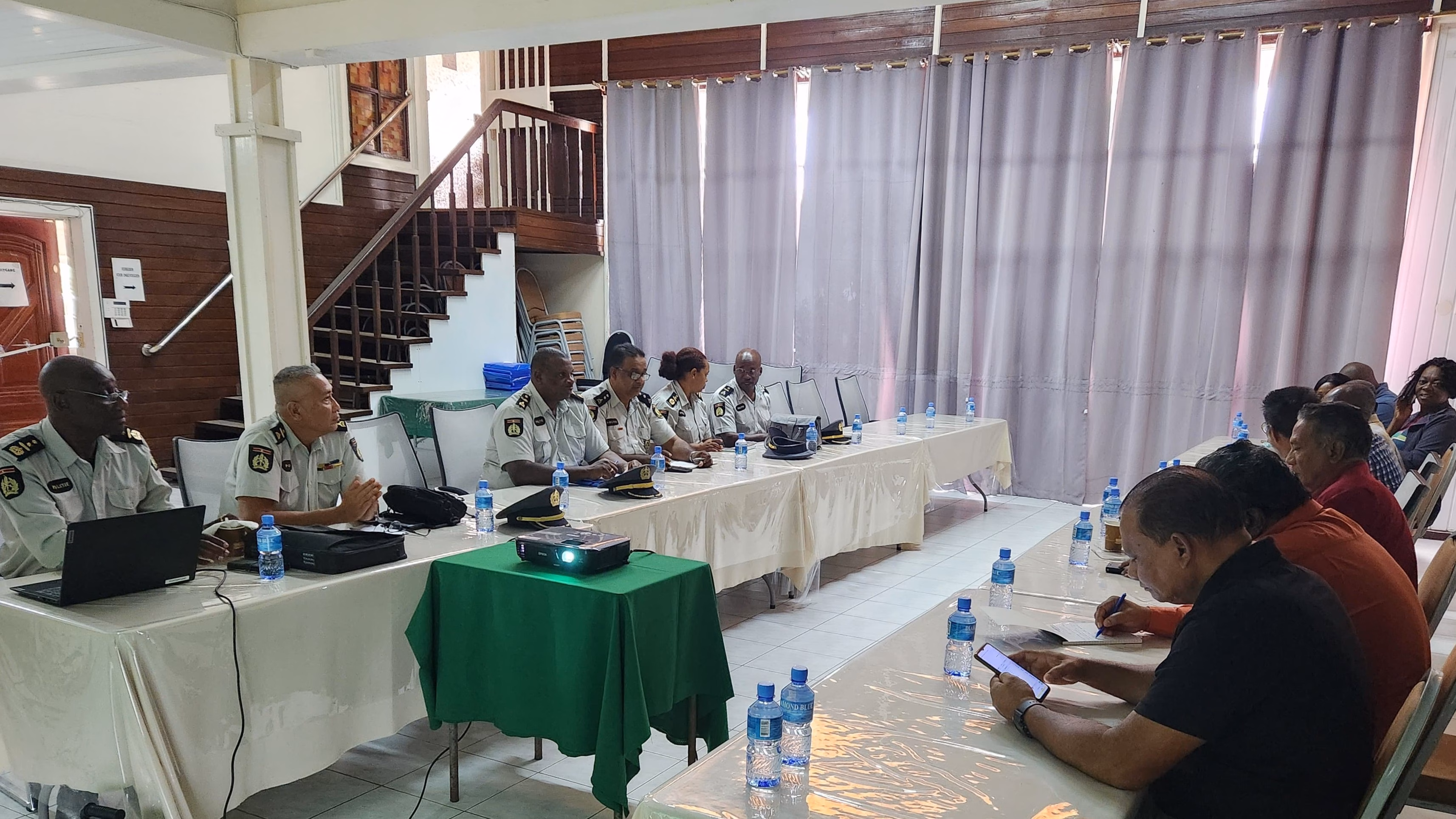 Voorzitter Samseerali Sheikh-Alibaks van het OKB, leden van het OKB en Commissievoorzitter, Commissaris van Politie Orlando Jacott, namen samen met commissieleden deel aan de vergadering. Commissaris Jacott lichtte toe dat de Commissie Veiligheid nauw samenwerkt met het Algemeen Secretariaat Verkiezingen (ASV) om een soepel en veilig verkiezingsproces te waarborgen.