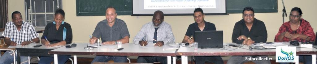 Het Hoofdbestuur van de docentenbond bestaat uit: Guno Castelen voorzitter, Ashvin Sewsahai ondervoorzitter, Sharmila Bhageloe-Debiecretaris, Maurice Zrour eerste penningmeester, Ravi Jaggoe tweede penningmeester, Jerry Oldenstam eerste commissaris, Judy Samson tweede commissaris.