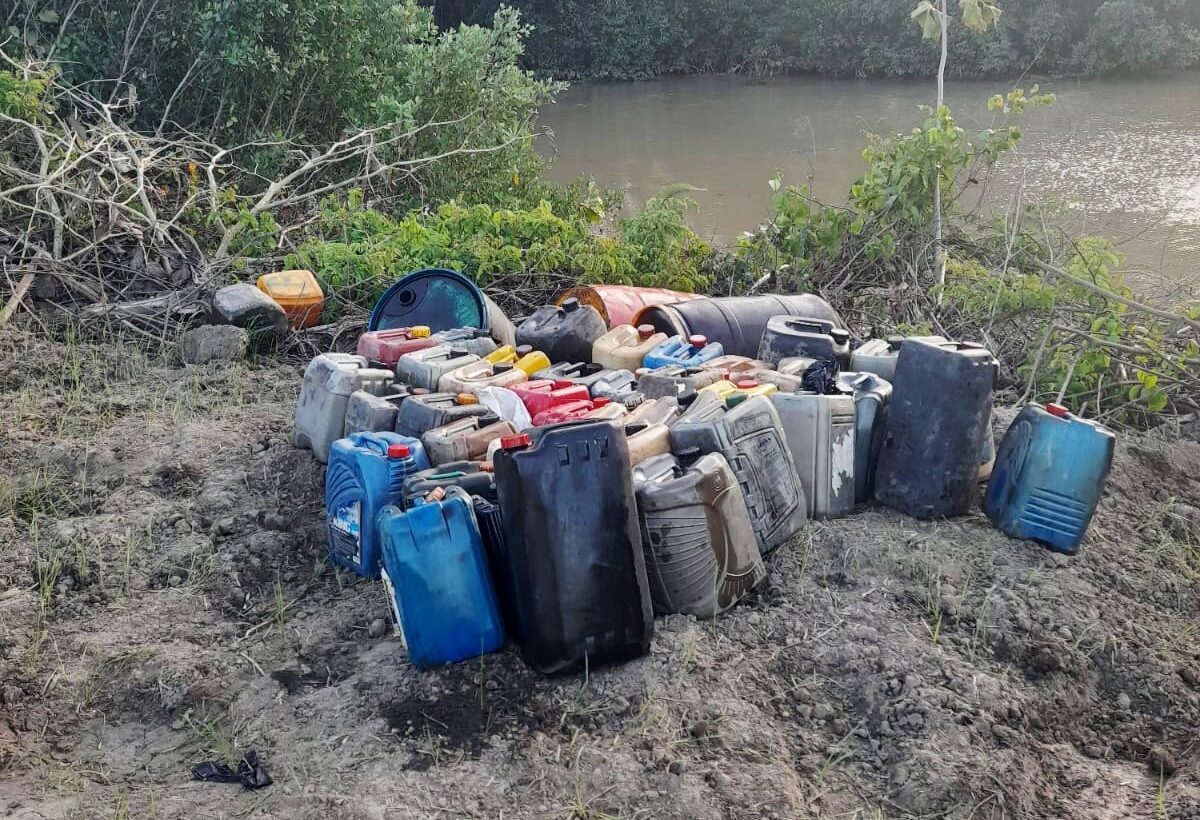 Een gemengd team van de politie van Regio-West heeft woensdag 3 december 2025 een vermoedelijke partij gesmokkelde brandstof in beslag genomen bij een kleidam aan de Karachieweg, aan de rechteroever van de Corantijnrivier.
