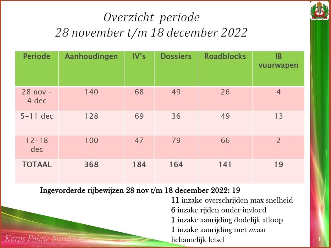 “De cijfers laten zien dat de politie vastberaden en extra actief is om de samenleving te beschermen”, zegt hij. Er zijn 368 verdachten aangehouden de afgelopen drie weken, waarvan de helft is ingesloten. De roadblocks zijn drastisch opgevoerd in stad en district. De flitsapparaten worden in alle districten ingezet.