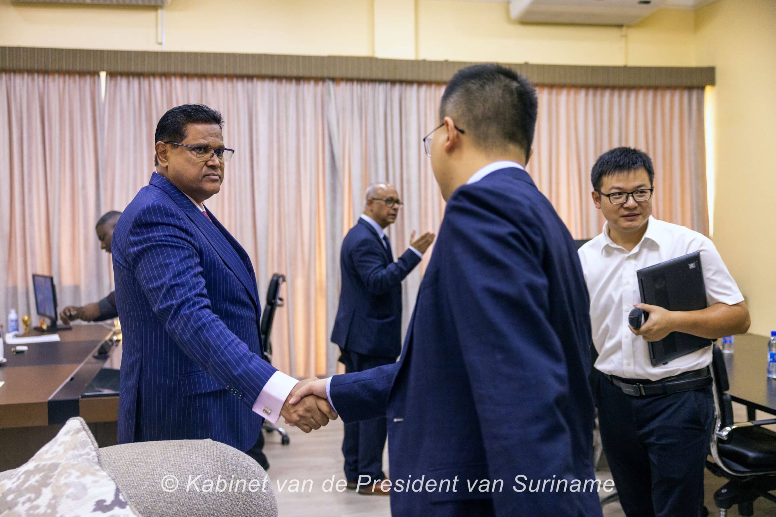 President Chandrikapersad Santokhi heeft op dinsdag 26 maart 2024 een delegatie van Power Construction Corporation of China, ook bekend als Power China, ontvangen op het Kabinet van de President om over de ontwikkeling van alternatieve energiebronnen te praten.