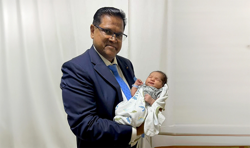 De president gaf aan dat hij vol trots een bijzondere pet erbij heeft. “Met immense dankbaarheid, vreugde en blijdschap mocht ik vandaag kennis maken met mijn kleinzoon, baby Tavishan. Een wonder, trots, maar bovenal een zegen van de Almachtige! Ik ben vanaf vandaag Nana, een rol die ik naast mijn dagelijkse werkzaamheden met trots zal vervullen. De hartelijke felicitaties aan de trotse ouders, mijn dochter Shanylla & haar echtgenoot Shailesh”, aldus de trotse president. “Hoe klein nu ook, altijd een vriend voor het leven. Welkom on earth, baby boy!” merkt de trotse Nana op.