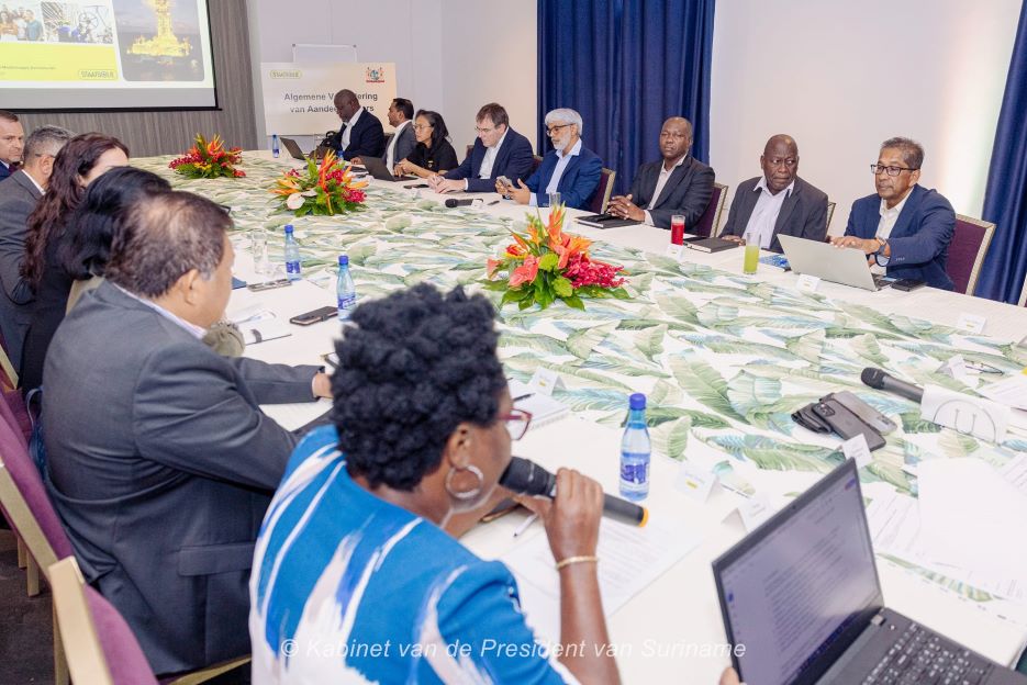 Tijdens de laatst gehouden Algemene Vergadering van de Aandeelhouders van Staatsolie, heeft president Chandrikapersad Santokhi aangegeven tevreden te zijn met de geboekte resultaten bij staatsbedrijf, Staatsolie Maatschappij Suriname NV.