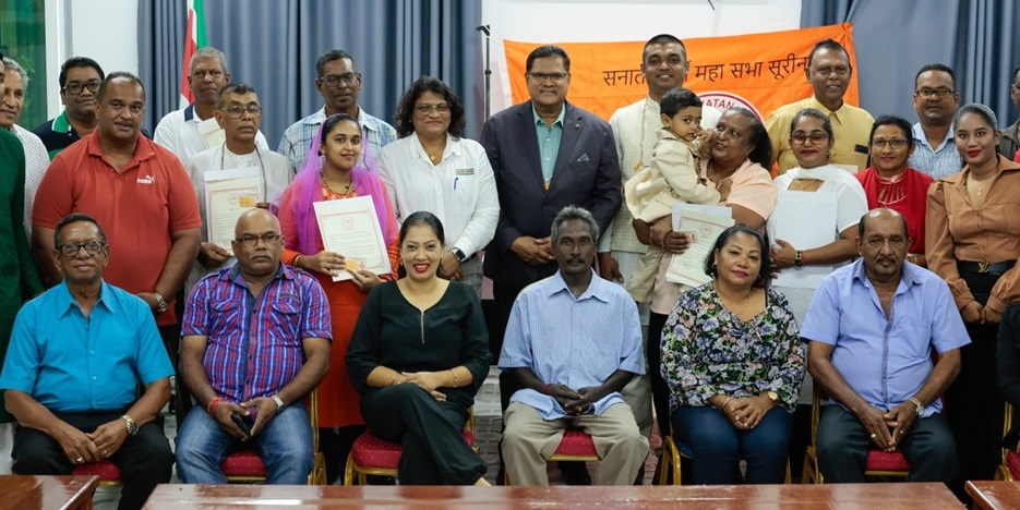 Deze predikanten, zowel dames als heren, ook bekend als pracáraks en pracárika’s, zijn in Nickerie opgeleid om het sociale en religieuze werk van de organisatie te bevorderen. President Santokhi merkte op dat de Sanatan Dharm over het hele land bijzonder werk doet en in diverse opzichten een belangrijke rol vervult in de verzorging van burgers op cruciale momenten in het leven.