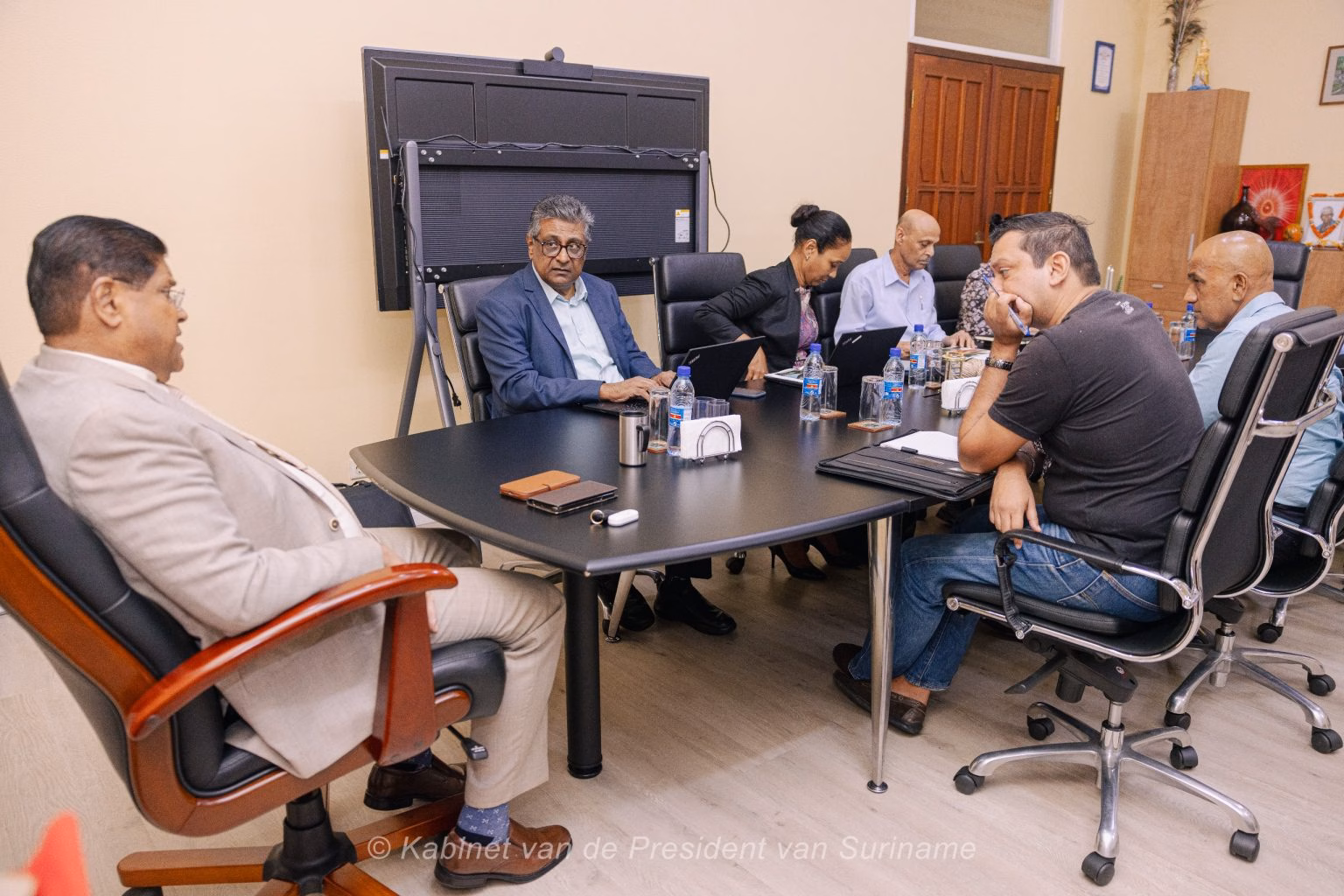 President Chandrikapersad Santokhi heeft samen met het RVI-team, onder leiding van minister Stanley Raghoebarsing van Financiën en Planning, een belangrijke vervolgbijeenkomst gehouden over de uitvoering van het spaarprogramma “Royalties voor Iedereen” (RVI).