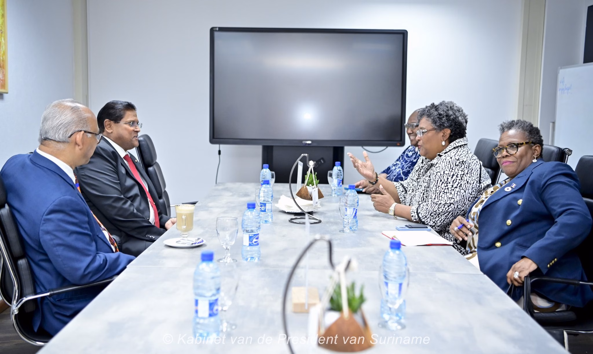 Tijdens het onderhoud op het presidentieel paleis sprak president Santokhi zijn waardering uit voor Mottley’s aanwezigheid en haar betrokkenheid bij regionale samenwerking. Hij prees haar inzet en het feit dat zij deze uitnodiging, ondanks haar drukke agenda, als enige in januari had geaccepteerd. Premier Mottley bekleedt sinds 1 januari ook het voorzitterschap van de Caricom, waardoor haar bezoek extra betekenis kreeg binnen de regionale diplomatie.