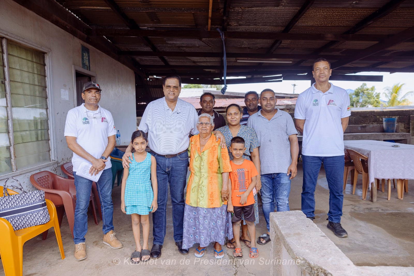 President Chandrikapersad Santokhi heeft samen met het AHP-team een bezoek gebracht aan een aantal AHP-cliënten in het district Wanica. Deze cliënten hebben in januari 2024 hun AHP-subsidie ontvangen in de vorm van een Housing Incentive Certificaat, waardoor ze hun woningen hebben kunnen renoveren.