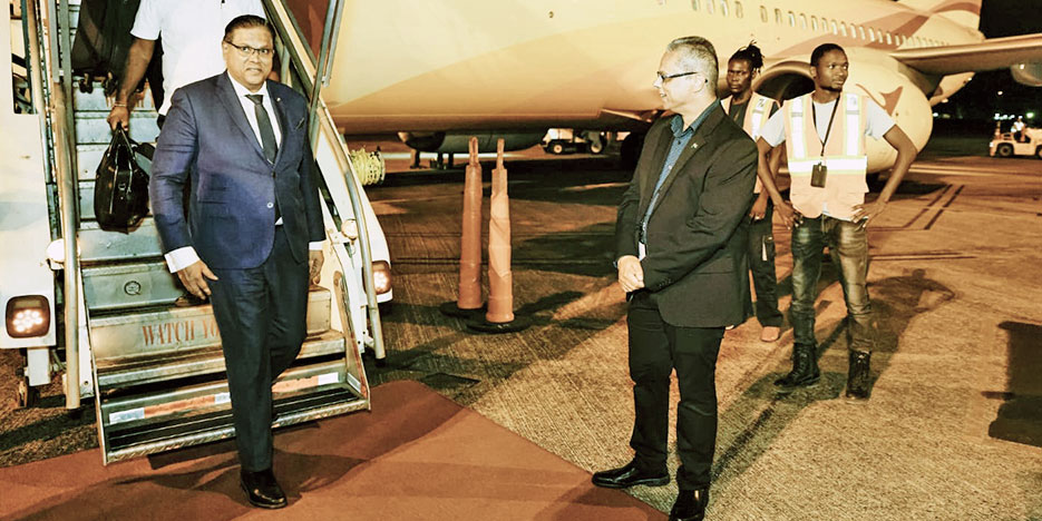 President Chandrikapersad Santokhi heeft afgelopen deelgenomen aan de 46ste Caricom-staatshoofdenvergadering in buurland Guyana. De Surinaamse regeringsleider heeft diverse diplomatieke gesprekken gevoerd met als hoogtepunt een breedvoerig trilateraal overleg met zijn ambtgenoten van Brazilië en Guyana.