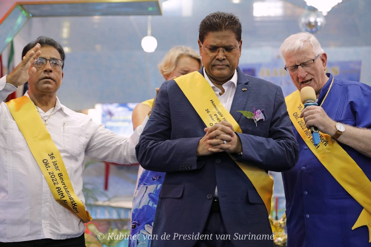 Santokhi legde daarbij meermaals de nadruk op het belang van gebed, waarvoor hij steeds grote bijval kreeg van de aanwezigen. Muni Radj Singh, apostel bij de Apostolische Bevrijdingskerk van Jezus Christus, gaf aan dat gebed voor Suriname centraal staat bij de viering van het 36-jarige bestaan van de kerk. “Bidden voor Suriname is van cruciaal belang, want als het goed gaat met Suriname, kunnen alle burgers plezierig met elkaar samenleven.” De kerkleider zegt dat het tijd is voor een vernieuwing, verandering en verfrissing, door de wind van Gods aanwezigheid in alle delen en aspecten van de samenleving en geheel Suriname.
