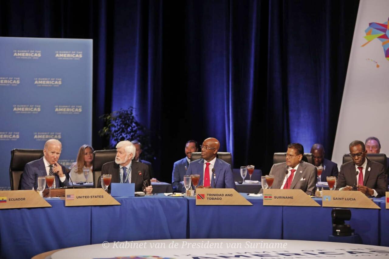 Het staatshoofd benadrukte het belang van de toegang tot concessionele financiering voor ontwikkelingslanden en gebieden met een laaggelegen kust. “De impact van de klimaatcrisis staat het bouwen aan een duurzame en veerkrachtige toekomst voor ontwikkelingslanden en laaggelegen kuststaten in de weg.” Alzo sprak president Chandrikapersad Santokhi tijdens de IX Summit of the Americas.