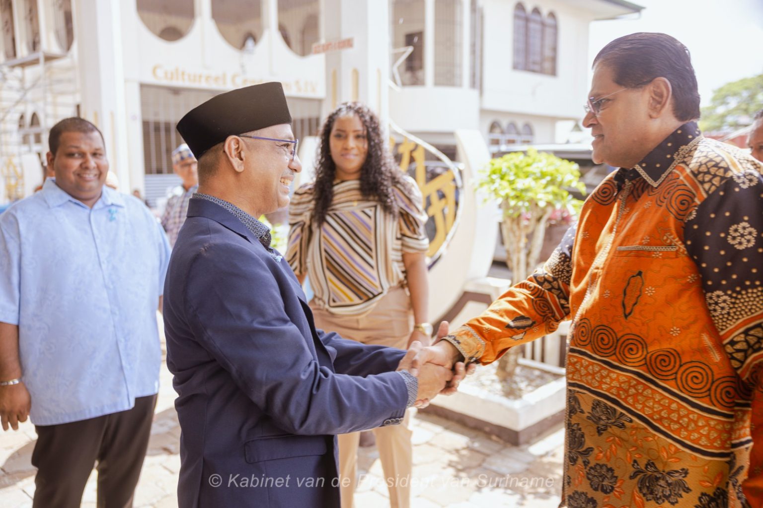 President Chandrikapersad Santokhi heeft ter gelegenheid van Ied Ul Fitre een bezoek gebracht aan de moskee van de Surinaamse Islamitische Vereniging (SIV), aan de Keizerstraat. In zijn toespraak, op zondag 30 maart, legde hij de nadruk op het belang van vrede, respect en solidariteit in de samenleving.