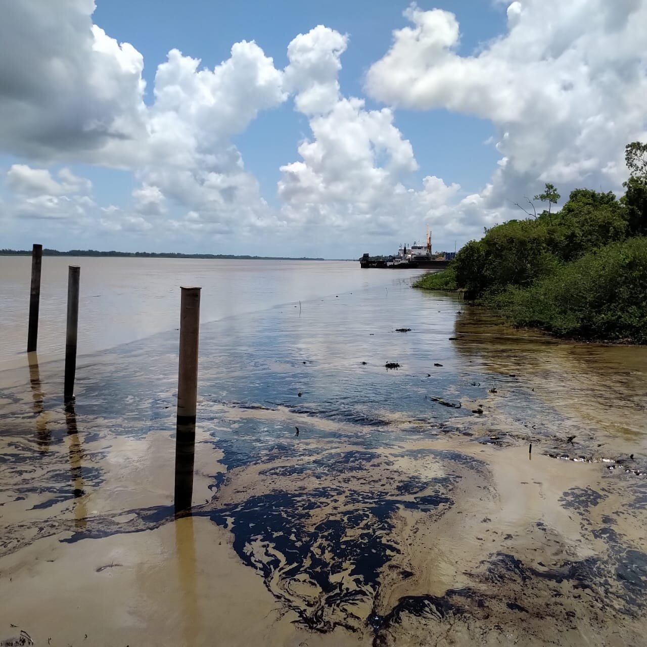 De milieuactivist Erlan Sleur is zelf de Surinamerivier opgevaren om te zien als het waar is dat er op diverse plekken in de Surinamerivier olievlekken waren geconstateerd.