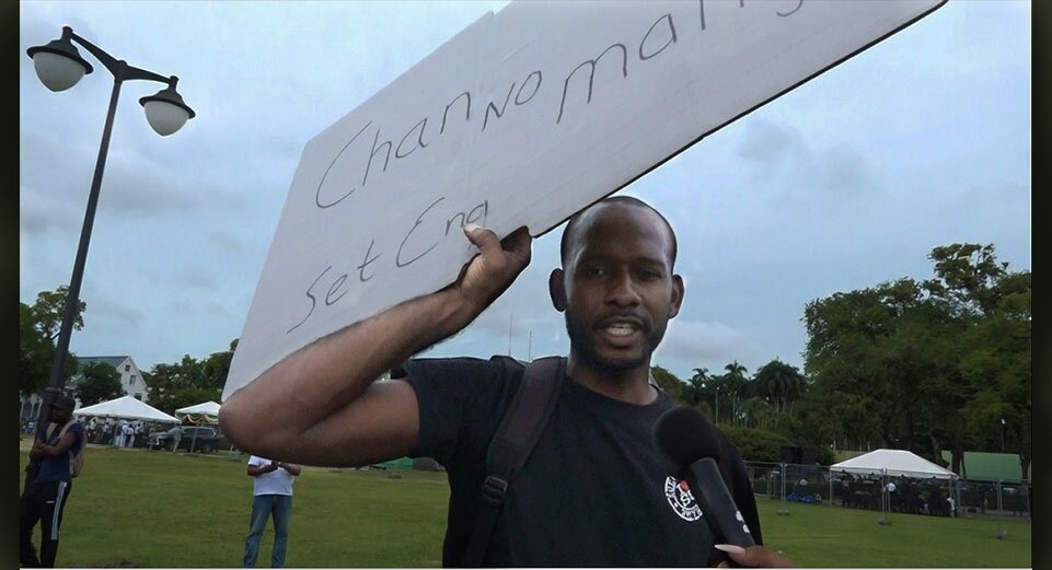 Terwijl Hofwijks zijn misnoegen aan uiten is op het Onafhankelijkheidsplein was ook een groep nabij het vlaggenplein aan het protesteren.