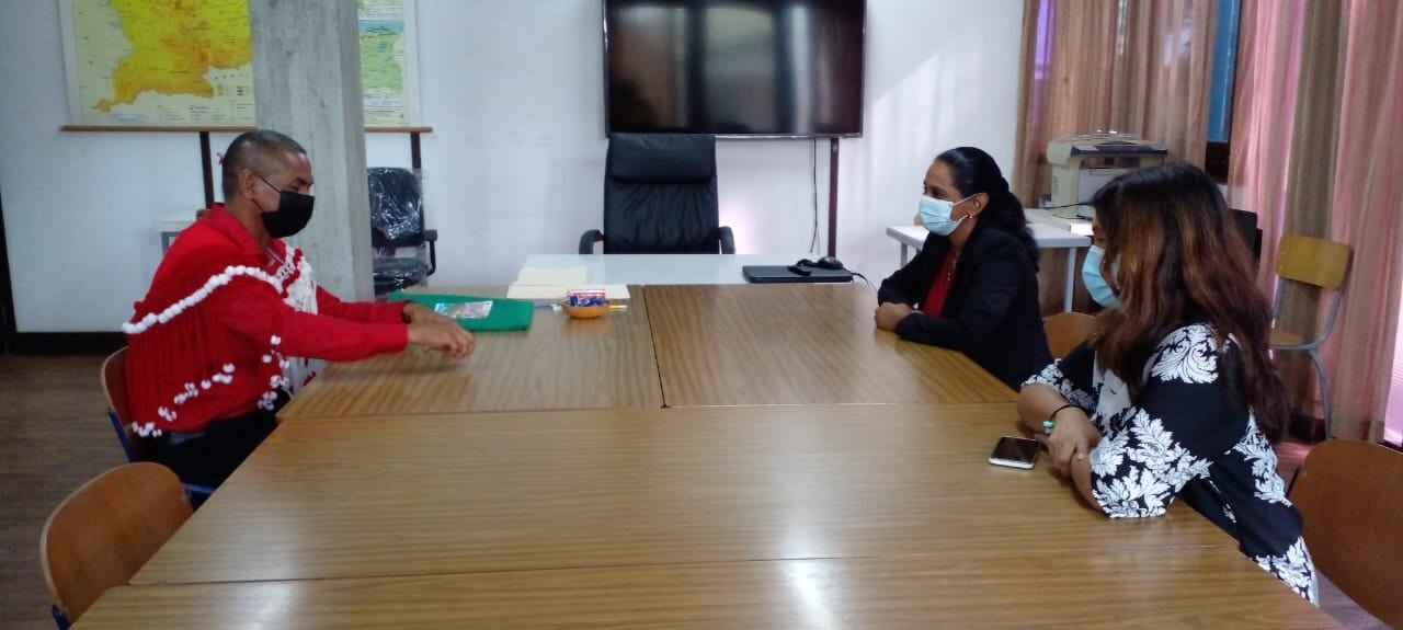 Dorpshoofd Carlo Lewis van Apoera, tevens bestuurslid van de VIDS, overhandigde de publicaties aan Jerome Egger, richtingscoördinator geschiedenis van ADEK en Tanya Sitaram, directeur van de bibliotheek van de universiteit. Met deze publicaties kunnen studenten van ADEK meer te weten komen over de historische bewoning van inheemse volken in Suriname.