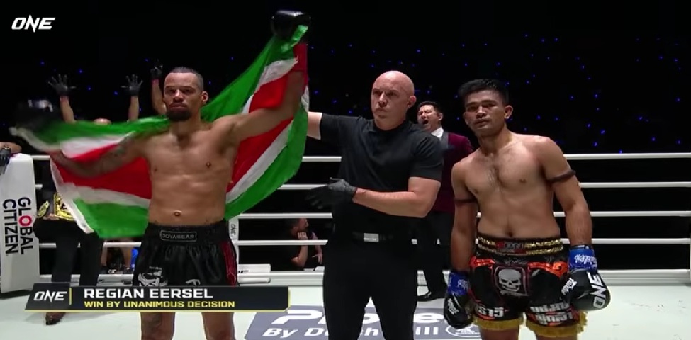 Surinamer Regian “The Immortal” Eersel heeft vrijdag de One wereldtitel lichtgewicht kickboksen herovert door Rungrawee te verslaan.