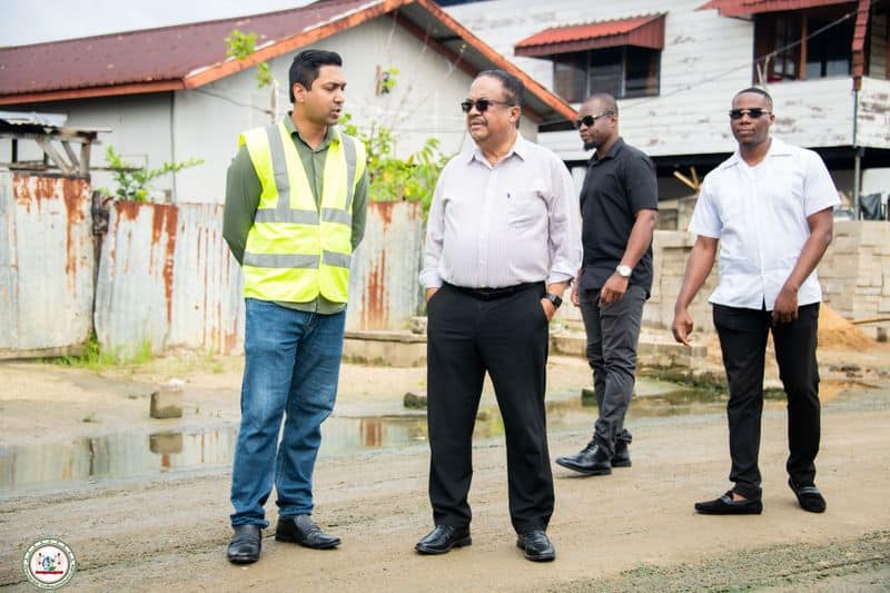Waarnemend president Gregory Rusland heeft vrijdag 9 januari 2026 een veldbezoek gebracht aan de Djoelstraat, waar bewoners al ongeveer twee weken kampen met stilstaand water.