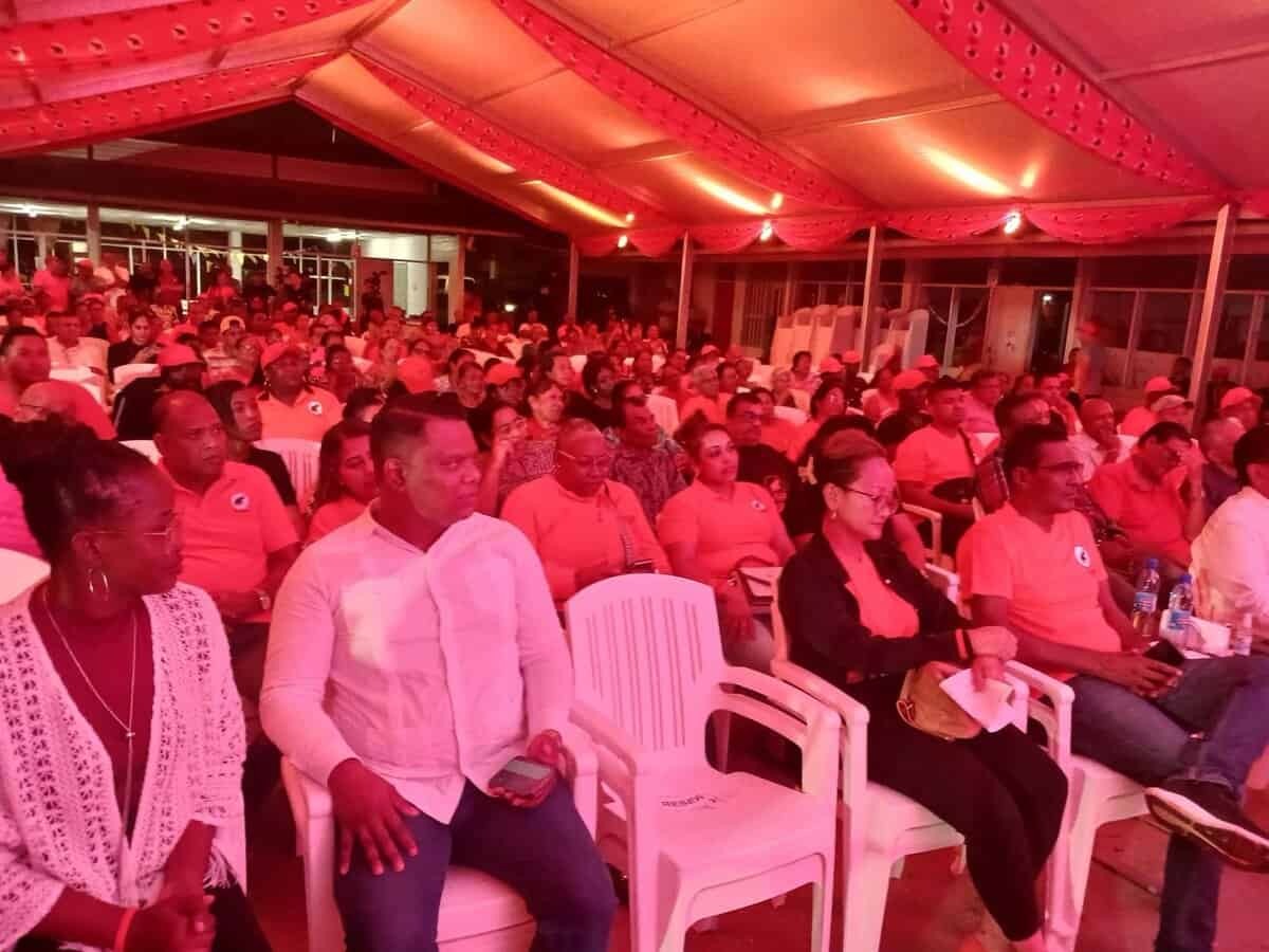 De kandidaat verwees in zijn toespraak naar de moeilijke economische situatie die volgens hem is achtergelaten door de vorige regering. “Onder de NDP-regering moesten salarissen eerder uitbetaald worden omdat de staatskas leeg was. Burgers konden amper SRD 50 per keer van hun eigen rekening opnemen. Dat zijn feiten,” stelde hij.
