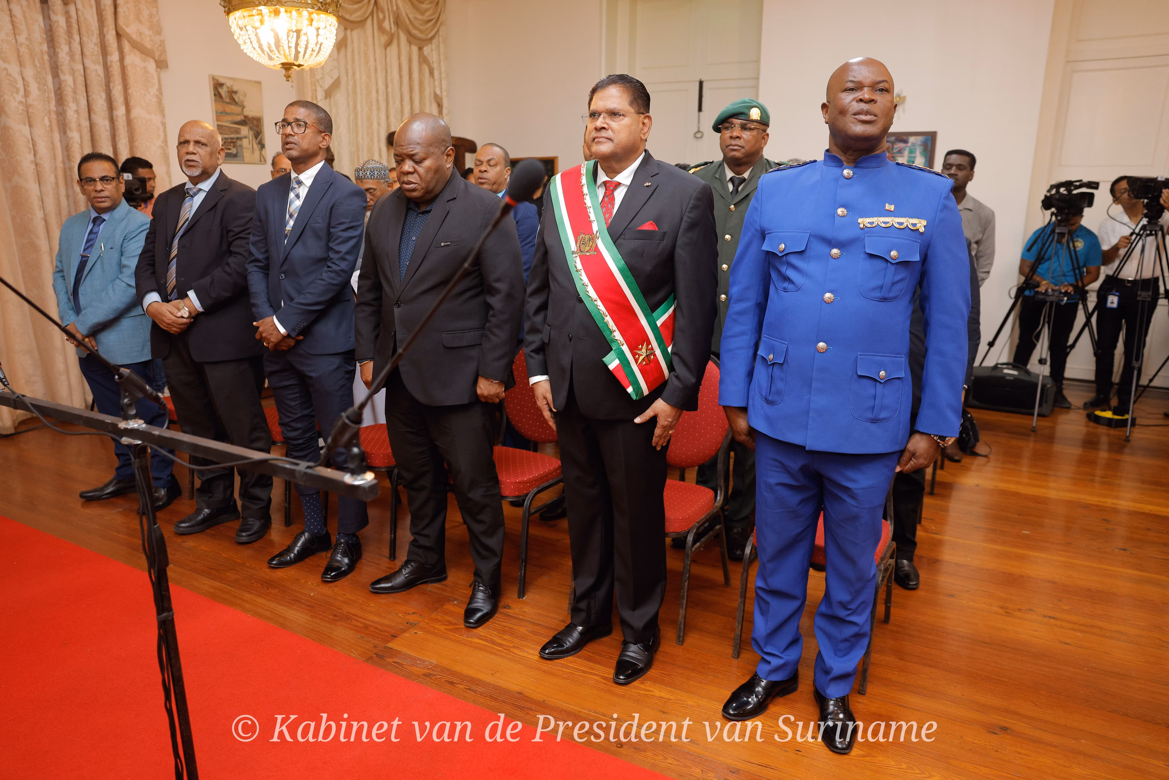 Tijdens de ceremonie sprak president Santokhi ook zijn dank uit aan voormalig minister Bronto Somohardjo voor zijn inzet. Hij prees de stappen die Somohardjo heeft gezet om het ambtenarenapparaat te stroomlijnen. “De regering is hem daarvoor uitermate zeer erkentelijk.” Het staatshoofd benadrukte dat de nieuw aangestelde functionarissen stevige uitdagingen te wachten staan en dat zij de steun van alle betrokkenen nodig zullen hebben om hun taken met succes uit te voeren.