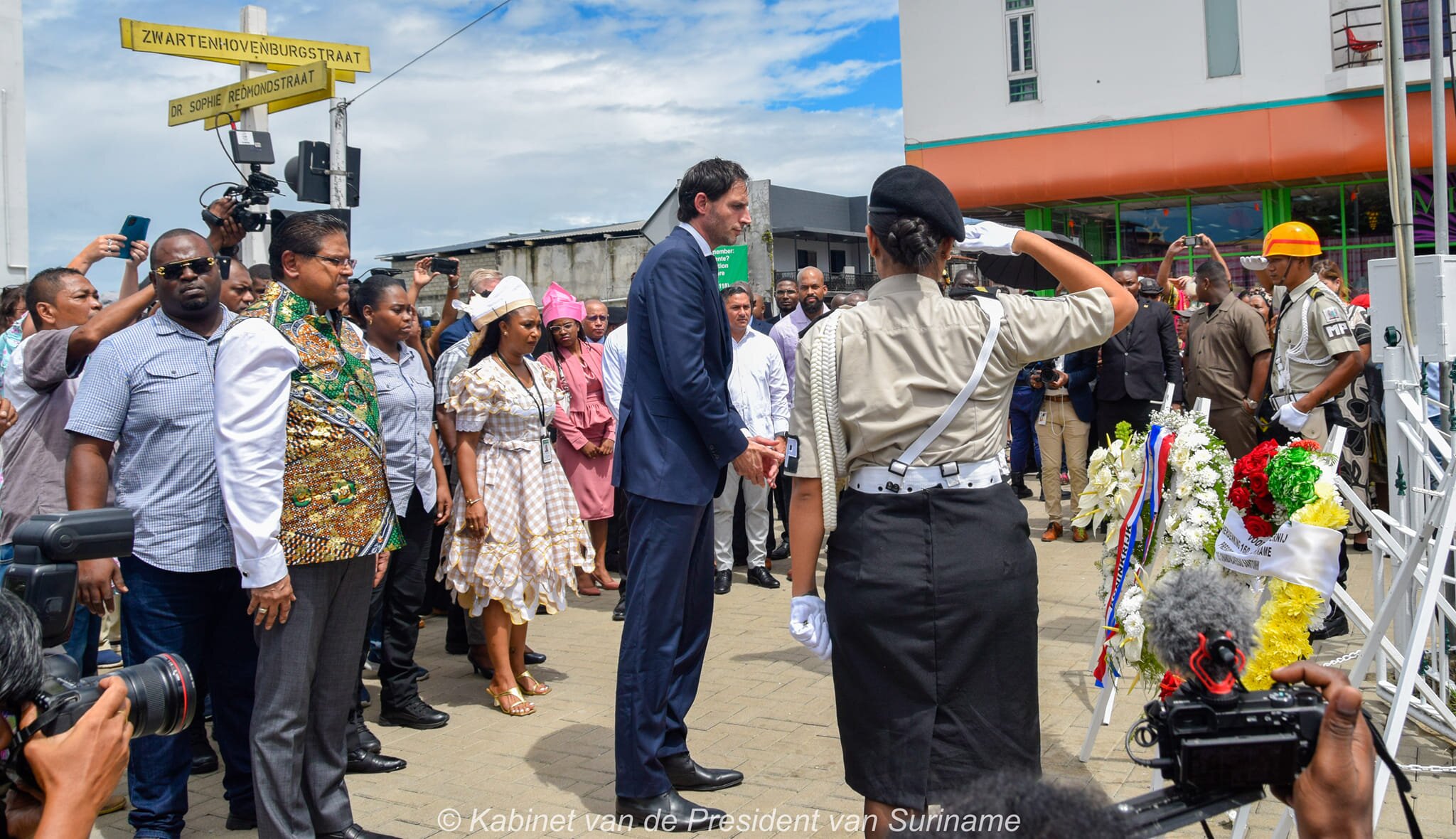 De Nederlandse vicepremier, tevens minister van Buitenlandse Zaken Wopke Hoekstra, heeft tijdens de kransleggingsceremonie de excuses van de Nederlandse staat en regering voor het slavernijverleden aangedikt. Hoekstra was ook aanwezig tijdens de viering van 160 jaar afschaffing van de slavernij. “Slavernij is een misdaad tegen de menselijkheid waar Nederland een belangrijk aandeel in had. Op veel plekken in de wereld zijn de sporen van dit pijnlijke verleden nog altijd zichtbaar. In Afrika en Azië. Hier in de regio. In Guyana, in Brazilië. In de Caraïbische delen van het Koninkrijk. En hier, natuurlijk, in Suriname. Hier in Suriname, waar, met medewerking en instemming van Nederlandse bewindvoerders, honderdduizenden volwassenen en kinderen naartoe zijn gehaald. Tegen hun wil en met extreem geweld. Waar zij onder mensonterende omstandigheden moesten werken op plantages in dichtbegroeide bossen en in zwampgebieden. En waar, voor degenen die zich hiervan wisten te bevrijden, de marrons, een uiterst onzeker leven wachtte vol ontberingen”, een passage van de toespraak van de Nederlandse vicepremier, tevens minister van Buitenlandse Zaken Wopke Hoekstra op zaterdag 1 juli 2023.