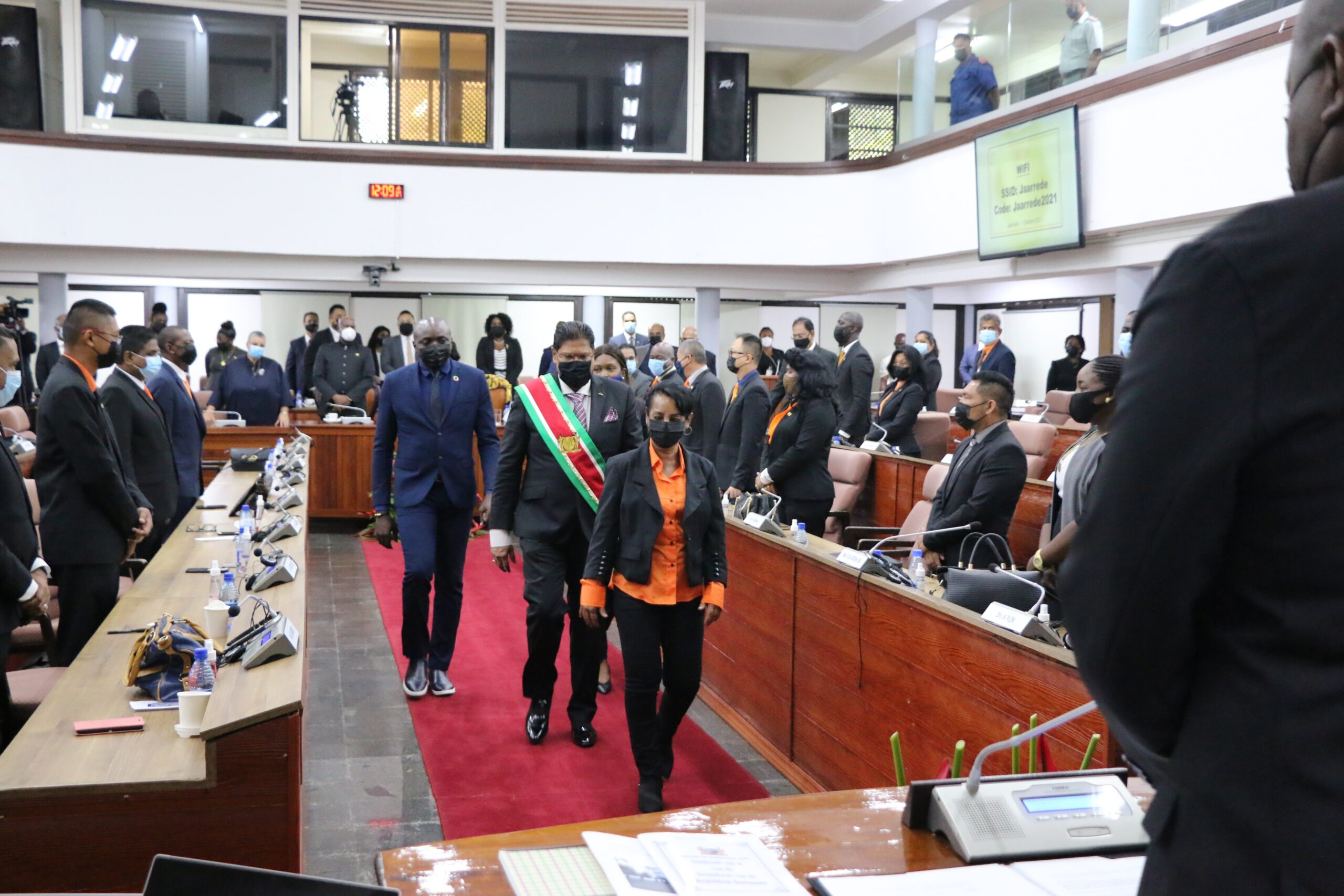 “Dat wij vandaag de dag kunnen gaan swabben en binnen 30 minuten ter plekke onze uitslag krijgen, komt door onze hernieuwde samenwerking met onze wereldfamilie.” De president hield het huis van het volk voor: “Ik hoor u, ik voel uw offers.” Santokhi zegt dat het een wijde blik vergt om het doel te halen, om van Suriname een gezond land te maken dat zich niet alleen beperkt tot ‘s lands grenzen. Grenzen in de wereld vervagen, waarbij landen behoren tot een grote wereldfamilie. Hierbij zijn er regels afgesproken die vervat zijn in contracten met internationale organisaties.