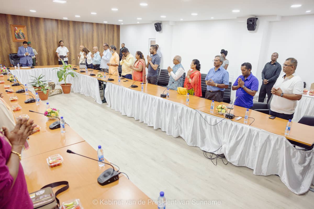 President Chandrikapersad Santokhi is zijn werkweek gestart met gebed voor land en volk. Op maandag 19 februari waren diverse hindoe geestelijken uit Suriname en het buitenland op beleefdheidsbezoek bij de president.