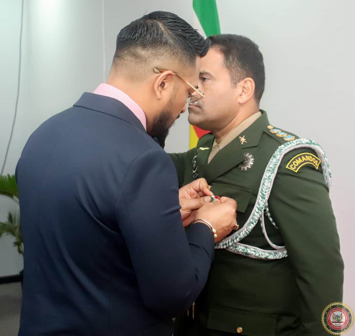 Kolonel Felipe Guimarães Rodrigues, militair attaché van de Federatieve Republiek Brazilië, is door minister Uraiqit Ramsaran van Defensie onderscheiden met de medaille voor speciale verdiensten in de rang van commandeur. De decoratie vond plaats in verband met het aflopen van zijn diensttijd in Suriname.