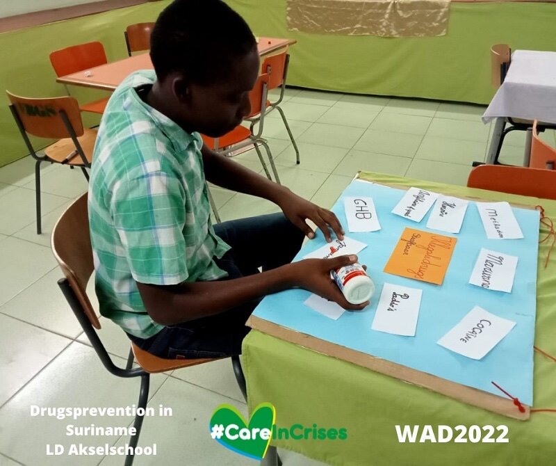 In verband met deze internationale dag heeft de Basic Life Skills Education Unit in samenwerking met de School Mediatheek Dienst van het Ministerie van Onderwijs, Wetenschap en Cultuur en het Uitvoerend Bureau van de Nationale Anti-drugs Raad gemeend extra aandacht te besteden aan drugspreventie via de verschillende schoolmediatheken van glo- en voj-scholen.