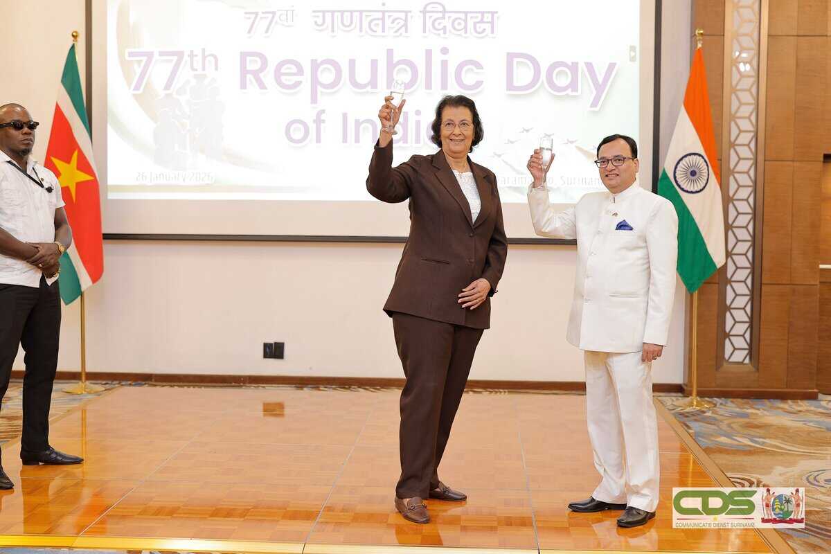 In haar toespraak benadrukte Simons het historische belang van Republic Day, dat volgens haar symbool staat voor democratie, rechtsstaat en de waardigheid van alle burgers. “Deze waarden zijn niet alleen diep verankerd in de Indiase samenleving, maar resoneren ook sterk met Suriname,” aldus het staatshoofd. Namens de regering en het Surinaamse volk sprak zij India haar felicitaties uit en wees zij op de hechte band tussen beide landen.