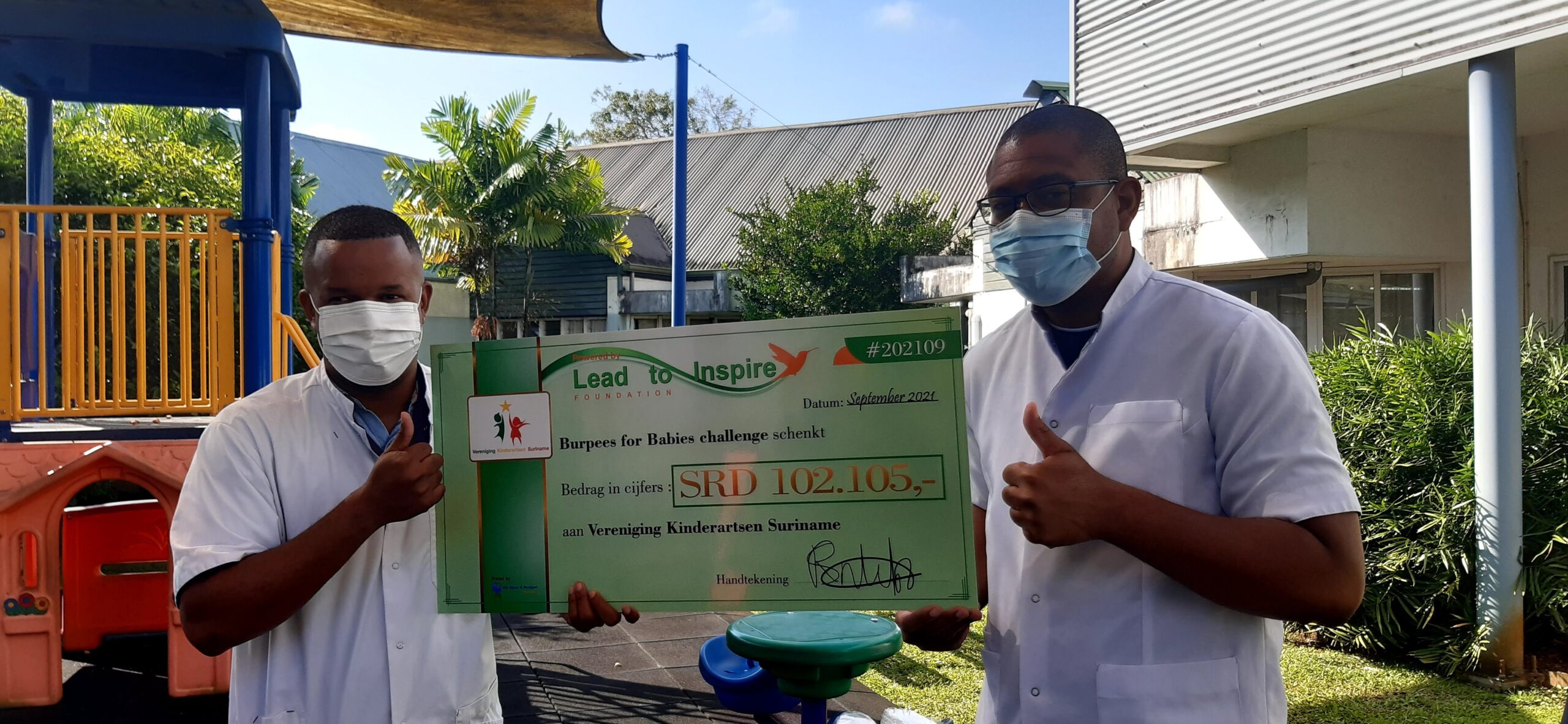 De Vereniging van Kinderartsen in Suriname heeft een cheque van SRD 102.105.- ontvangen. Stichting Lead to Inspire heeft zondag deze geste gedaan aan de vereniging. Hiervoor hebben sporters zich duidelijk ingezet door mee te doen aan de Burpees for Babies Challenge die de vorige week is georganiseerd.