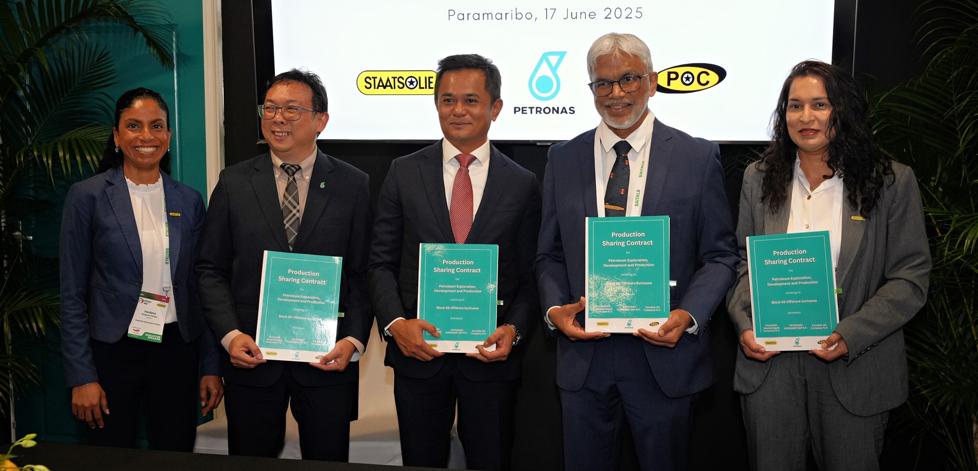 Staatsolie Maatschappij Suriname N.V. heeft op dinsdag 17 juni 2025 een productie-delingscontract (PSC) ondertekend met PETRONAS Suriname E&P B.V. en Paradise Oil Company N.V. voor blok 66 in het diepe zeegebied voor de kust van Suriname.