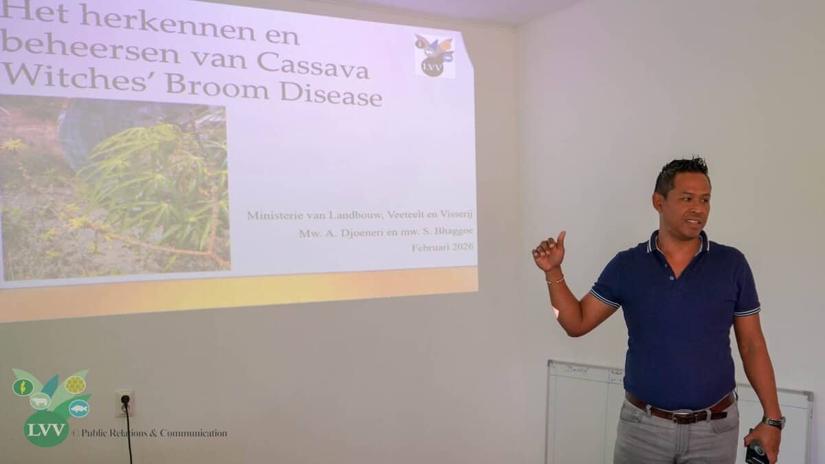 Het ministerie van Landbouw, Veeteelt en Visserij waarschuwt dat Cassava Witches Broom Disease (CWBD) een ernstige bedreiging vormt voor de cassaveteelt, omdat de ziekte zich snel kan verspreiden. Daarom wordt nadrukkelijk opgeroepen om voorzorgsmaatregelen strikt na te leven, zodat kruisbesmetting wordt voorkomen.