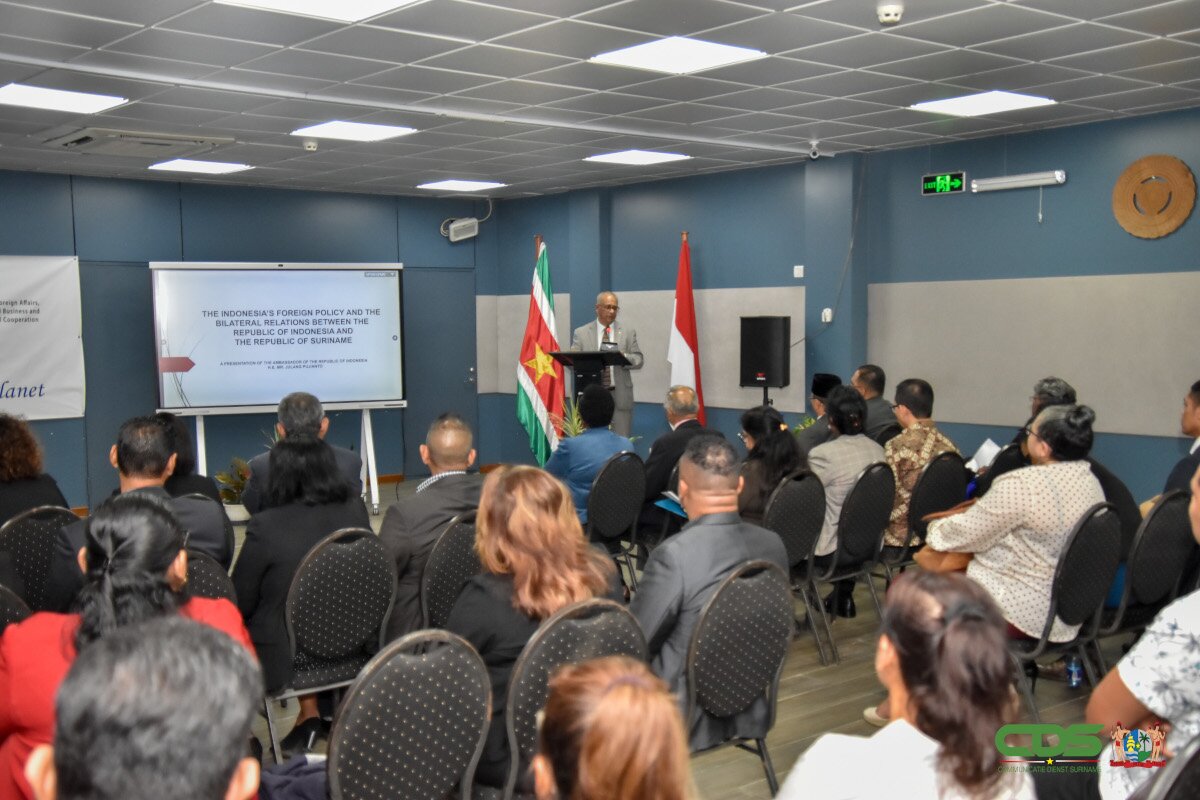 De diplomaat deelde zijn kennis over het buitenlands beleid van de Republiek Indonesië, waarbij hij ook inging op de bilaterale betrekkingen tussen zijn land en Suriname. “De relatie tussen Indonesië en Suriname ontwikkelt zich zeer goed op politiek vlak. Nu moeten we profiteren van de goede relatie op politiek niveau, om economisch voordeel voor beide partijen te halen”, aldus ambassadeur Pulijanto.