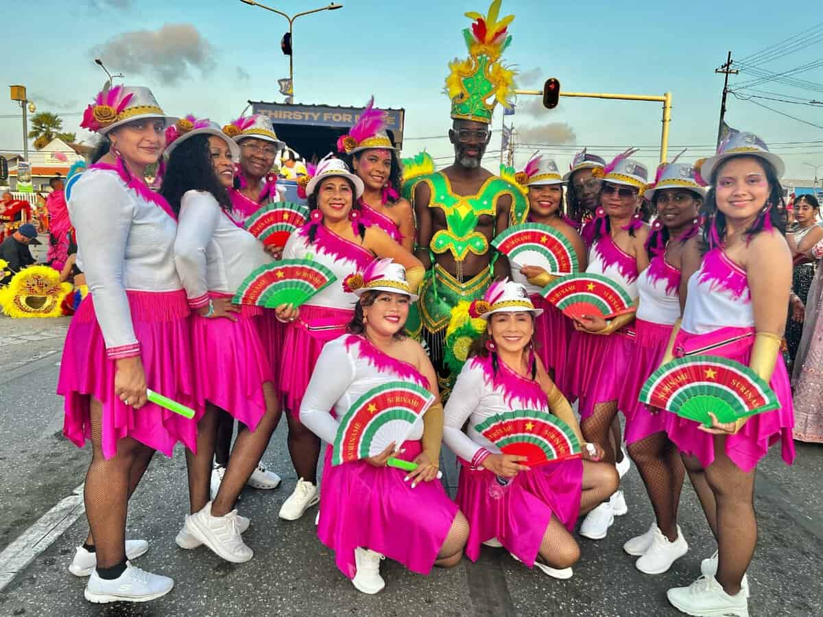 De Surinaamse delegatie heeft op 2 en 4 maart een indrukwekkende bijdrage geleverd aan de 55e editie van het Curaçao Carnaval. Onder leiding van Stichting B’Art, Culture & Sport Empowerment, met voorzitter Bianca Graskamp aan het roer, wist de groep van 100 personen de aandacht te trekken met een kleurrijk spektakel vol traditionele kostuums, opzwepende muziek en dynamische dansoptredens.